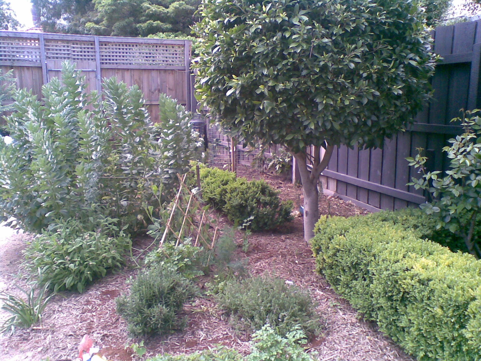 Infront of Fig (where bin was) - is now a space for drying cuttings (before adding to compost)